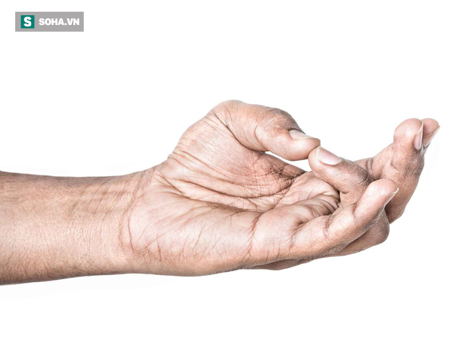 Sau vài phút, hạ thấp tay xuống nhưng vẫn nhìn vào ngón út.